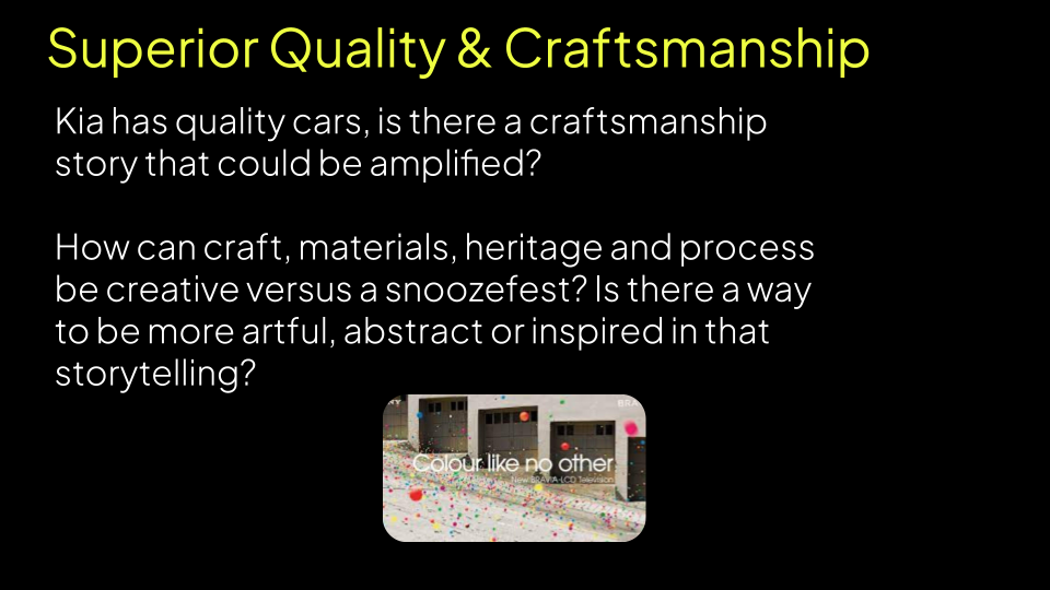 Provide an agency POV for David & Goliath exploring how brands shift from value to premium. Explore considerations for Kia.Part I: Defining Premium